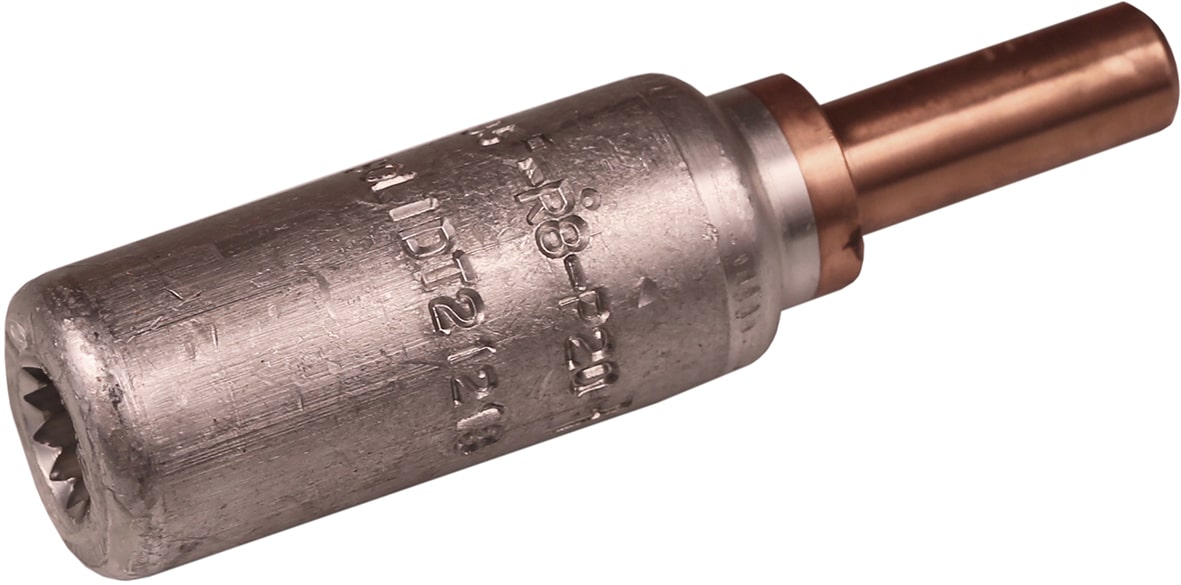 AlCu-Stiftkabelschuh für mehrdrähtige Al-Leiter mit 35 mm² oder für massive Al-Leiter mit 50 mm². Verwendung mit den zertifizierten Elpress-Systemen V1300 oder V250.
