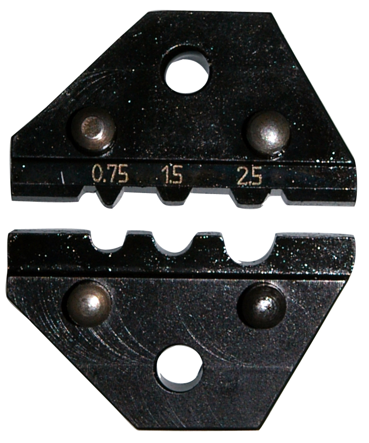 Die pair for uninsulated terminals 0.25-2.5 mm², tab crimping.