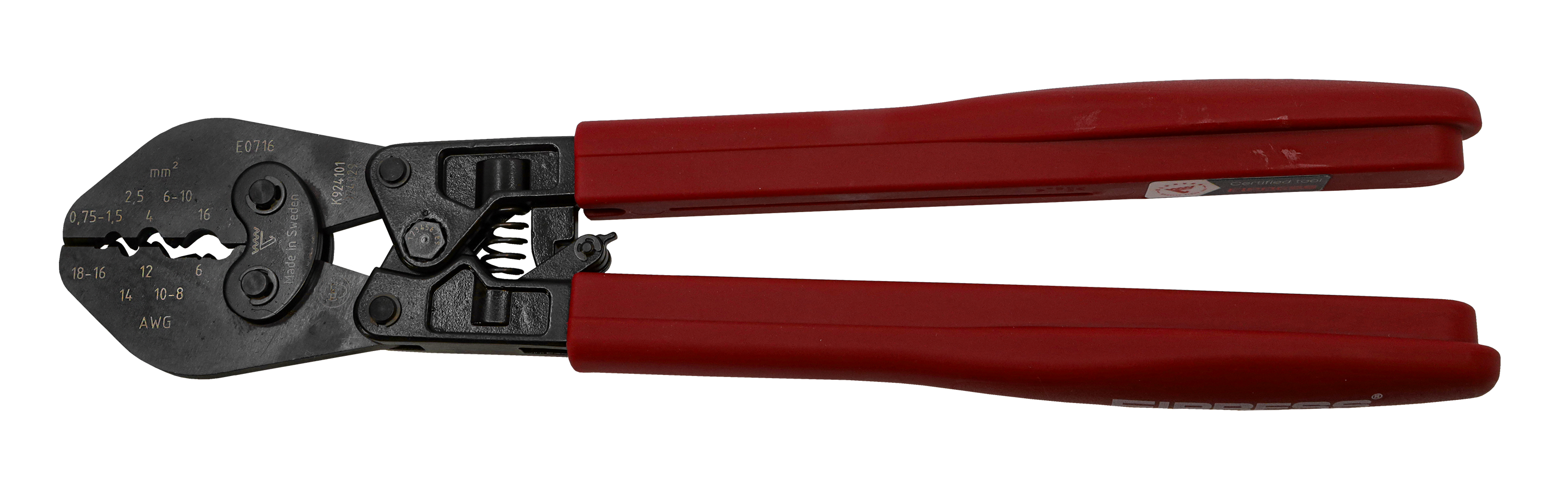 Tested and certified mechanical hand-held tool for crimping Cu-terminals 0,75-16 mm², AWG 18-6.