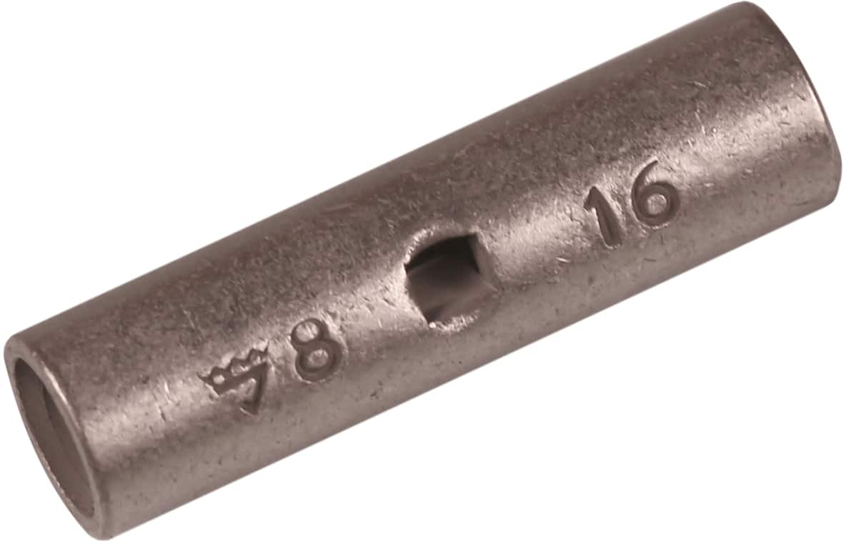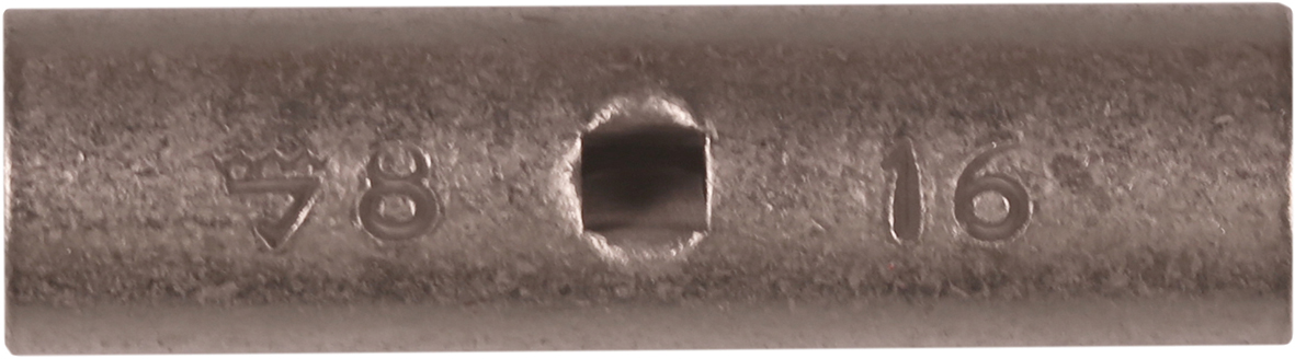 Uninsulated through connector for stranded (class 2) Cu conductors, 16 mm². Used with Elpress certified systems V600, V1300 or V250.
