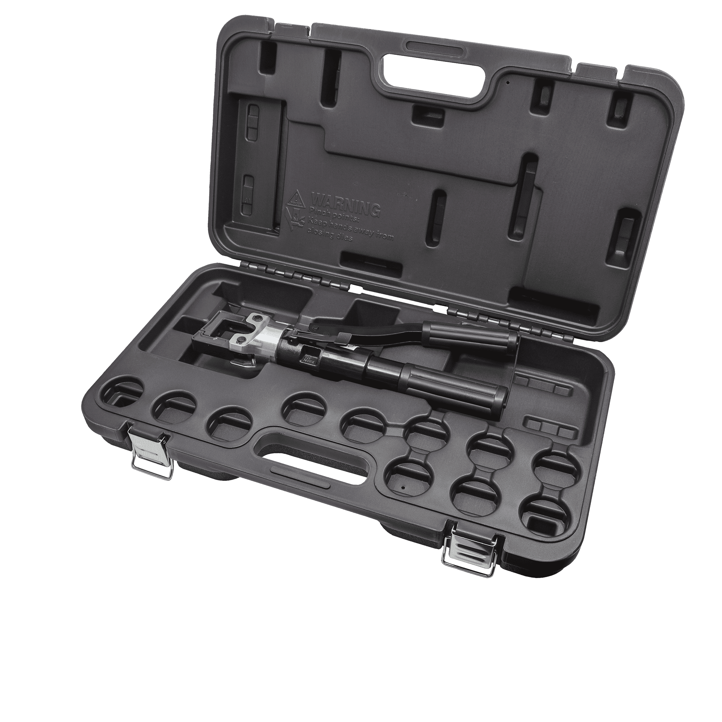 • Tested and certified hydraulic hand-held tool for contact crimping Cu terminals, type KR/KS, KRF/KSF, KRT/KST 10-70 mm², KRD/KSD 10-95 mm² and C sleeves C6-10 and C16-25.