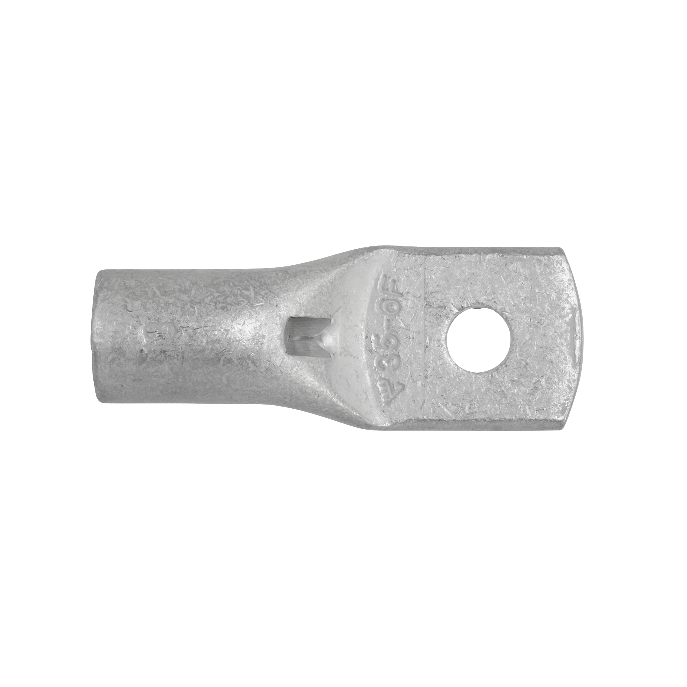 Tube terminal for multi stranded (class 5) and stranded (class 2) Cu-conductors (acc. to IEC 60228), 35 mm², with an M6 hole in the palm. Used with Elpress certified systems V600, V1300 or V250.