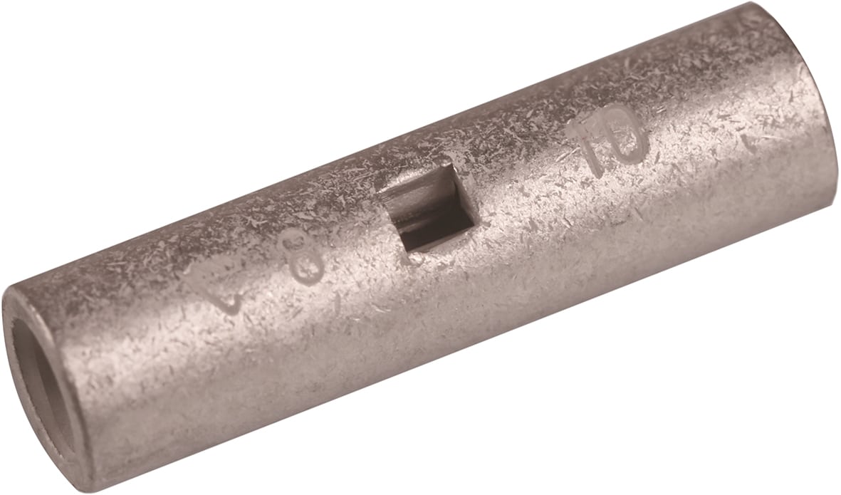 Uisolert skjøtehylse for mangetrådet (klasse 5) og fåtrådet (klasse 2) Cu-leder, 10 mm². Brukes med det sertifiserte verktøyet GWB4099 eller ES2258.