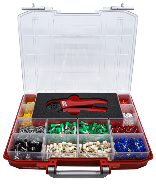 RPL1800 er en profesjonell og komplett sortimentboks for elektrikere som ønsker orden på sakene. En systemløsning for oppbevaring av verktøy og endehylser som brukes i det daglige arbeidet.Egenskaper:praktisk og sikkert utformet for å kunne stables og har uttakbare innsatser, perfekt for enkel påfylling av forbindelser.Sortimentboks for profesjonell bruk som inneholder 1800 isolerte endehylser, avisolerings- og klippeverktøyet SCT001 og presseverktøyet PEB0116H/PEB0116S.