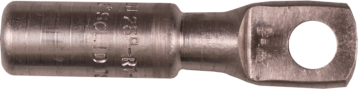 Al terminal for stranded Al cable 25 mm², or for solid Al cable 35 mm² with an M8 hole in the palm. Used with Elpress certified systems V1300 or V250.