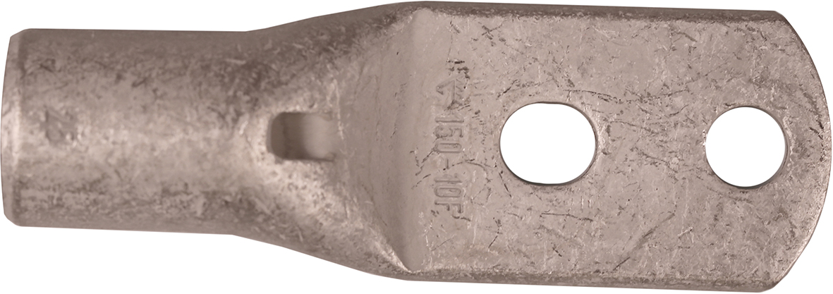 2 holed tube terminal for multi-stranded (class 5) and stranded (class 2) Cu-conductors (acc. to IEC 60228), 150 mm², with two M10 holes in the palm. Used with Elpress certified systems V600, V1300 or V250.